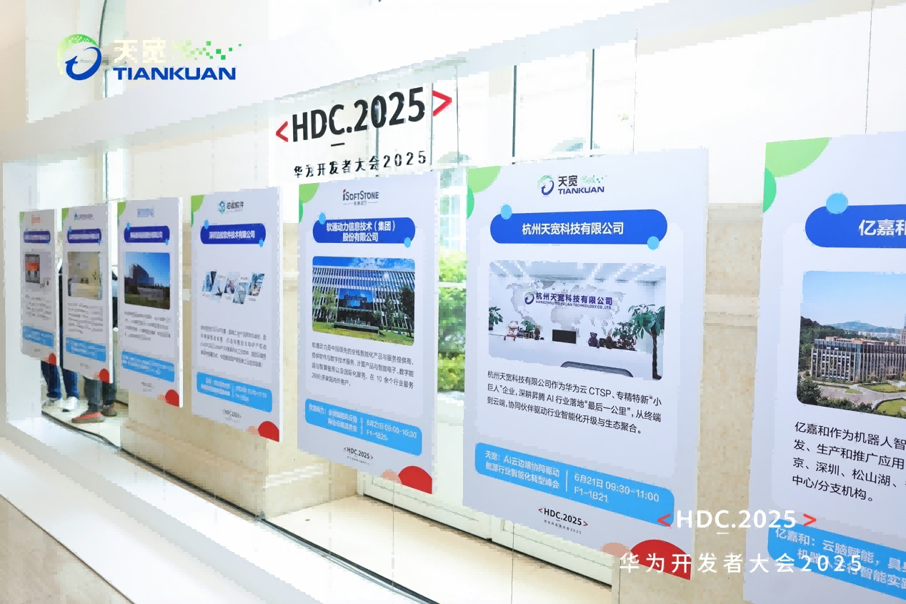 2025年6月20日至22日,華為開(kāi)發(fā)者大會(huì) HDC·2025在東莞松山湖盛大舉行。這場(chǎng)由華為云主辦的年度盛會(huì),匯聚了全球開(kāi)發(fā)者、生態(tài)伙伴與行業(yè)先鋒,聚焦技術(shù)趨勢(shì)、產(chǎn)業(yè)落地與生態(tài)協(xié)同,是業(yè)內(nèi)公認(rèn)的AI與云計(jì)算領(lǐng)域最具前瞻性與影響力的科技盛事,同時(shí)受到行業(yè)外科技觀察者和咨詢分析界廣泛關(guān)注。天寬作為大會(huì)云鉆合作伙伴亮相,并承辦AI云邊端協(xié)同驅(qū)動(dòng)行業(yè)智能化轉(zhuǎn)型專題論壇。
